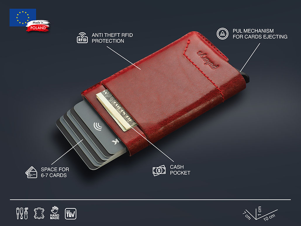 Pagaminta iš augalinio rauginimo Nomad odos. Kruopščiai detalizuotas ir papuoštas siūlėmis. Neįtikėtinai talpus – sutalpins daugybę kortelių ir dokumentų, suteikdami lengvą prieigą prie jų dėl specialaus laipsniško išstūmimo mechanizmo. Papildomos dvi kišenės padės sutvarkyti turinį ir tuo pačiu puikiai atrodyti. Dėl piniginės konstrukcijoje naudojamos RFID blokavimo technologijos jūsų jautrūs duomenys ir kredito kortelių lėšos yra visiškai saugūs ir apsaugoti nuo neteisėto nuskaitymo ar vagystės. Pagaminta rankomis, kruopščiai – kad jūsų naudojimas būtų visiškai patenkintas.