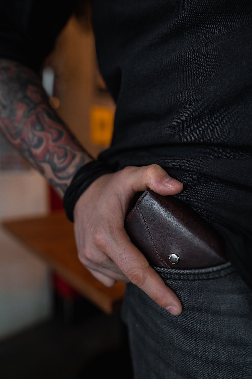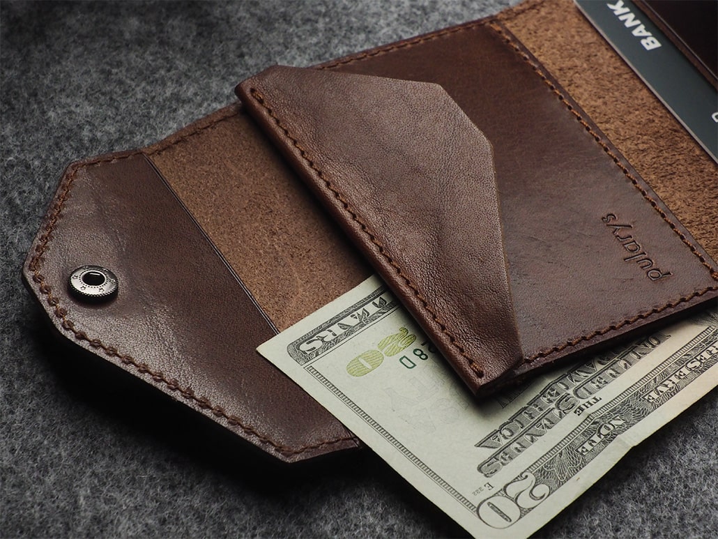 Piniginė pagaminta iš augalinio rauginimo Nomad odos.