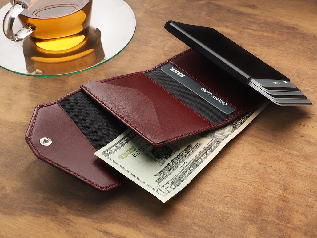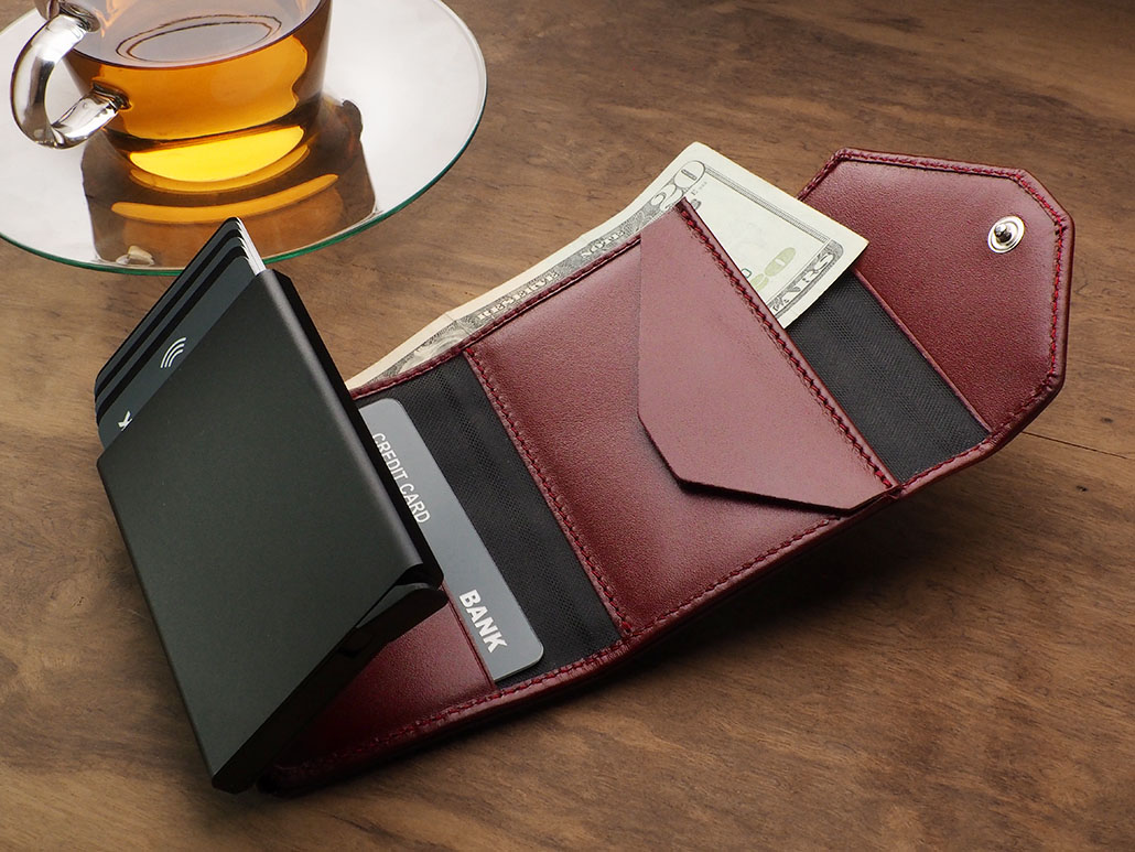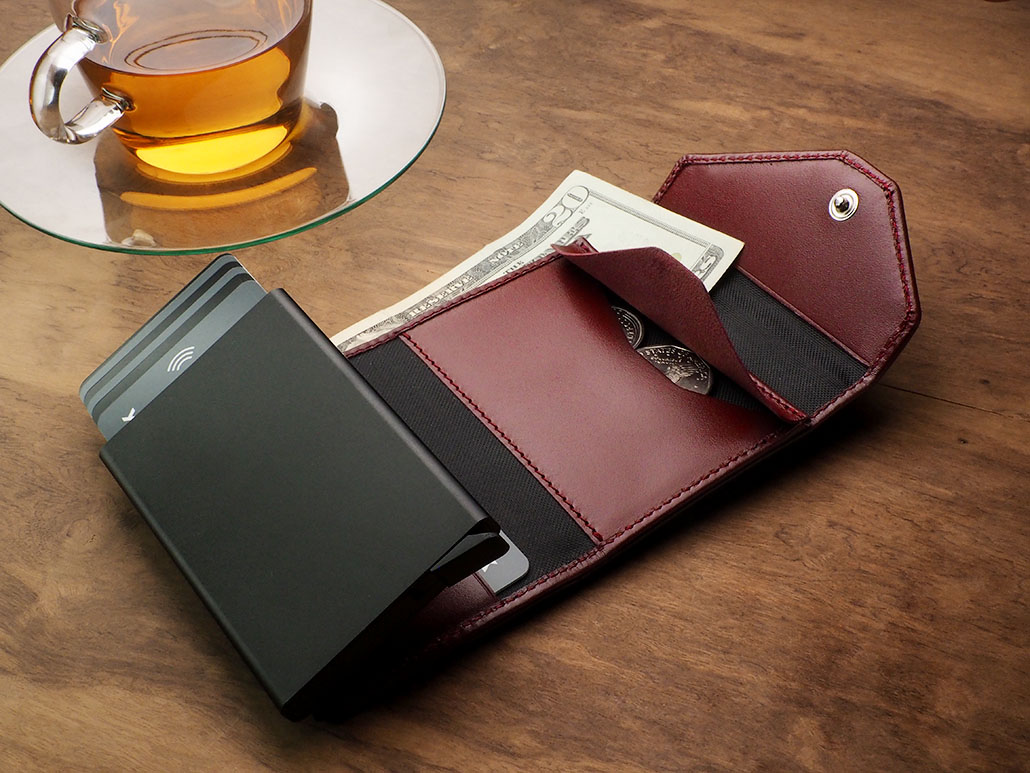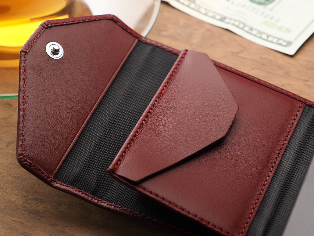 Rafinuota, ir kukli. Pagaminta iš minkštos liesti, išskirtinės itališkos odos. Kruopšti apdaila ir subtilus susiuvimas patenkins bet kurį tobulų detalių mėgėją. Didelė talpa: piniginėje tilps daug kortelių ir kupiūrų, taip pat reikalingos monetos – elegantiškoje vidinėje kišenėje. Lengvai pasiekiamas: specialus laipsniško išstūmimo mechanizmas leidžia greitai pasiekti ieškomą kortelę. Piniginės konstrukcijoje naudojama RFID blokavimo technologija užtikrina, kad jūsų mokėjimo kortelės ir dokumentai būtų visiškai apsaugoti bet kada ir bet kur. Galite lengvai atsikvėpti – jūsų jautrūs asmeniniai duomenys ir grynieji pinigai yra apsaugoti nuo vagystės ar neteisėto nuskaitymo. Registruotas dizainas – unikalus ir vienintelis rinkoje.